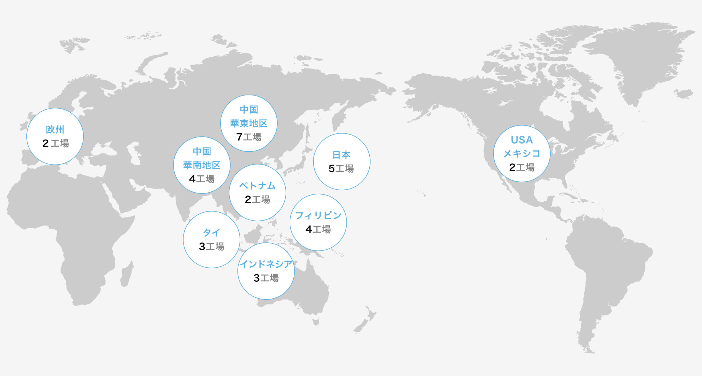 日本、中国、アセアン、欧米など住友商事とスミトロニクスのグループネットワークを活用し、お客様のご要望や最終需要地にあわせ、最適地での生産、電子部品や機構 ・成型部品も含めた部品供給、完成品の物流など、あらゆるご提案をいたします。他地域への生産移管に際しても弊社のグローバルネットワークで同品質のオペレーションをお約束します。